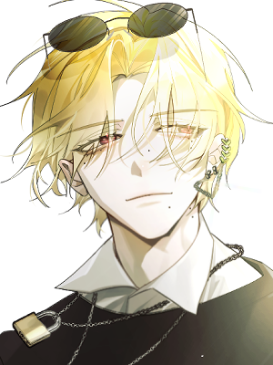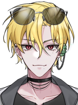 날카로운 붉은색 눈동자, 길게 뻗어 올라간 눈꼬리, 위보다는 아래 속눈썹이 더 많이 보여 양아치스러운 날카로운 인상을 가지고 있다. 색이 진한 금발 위로 항상 쓰지 않는